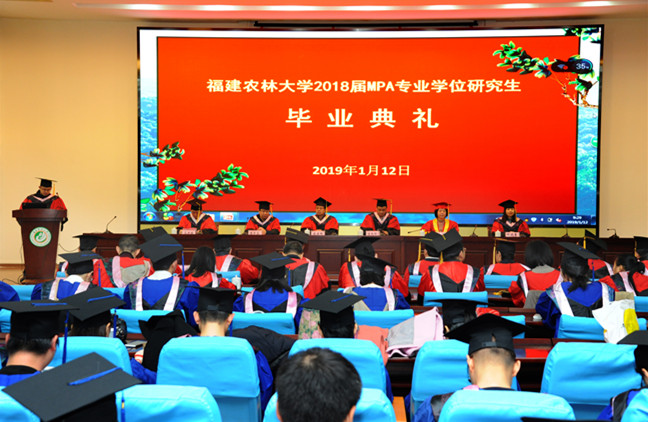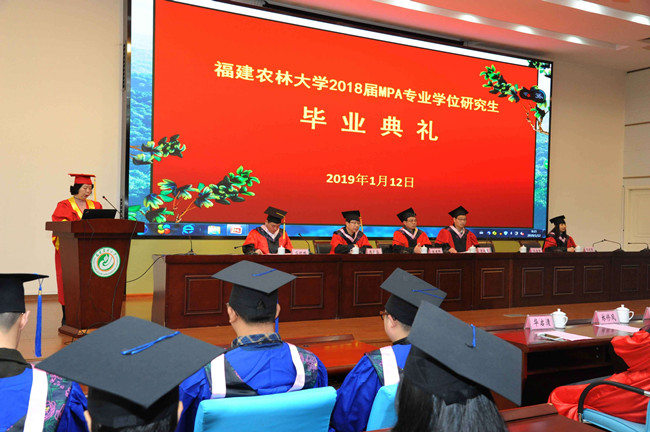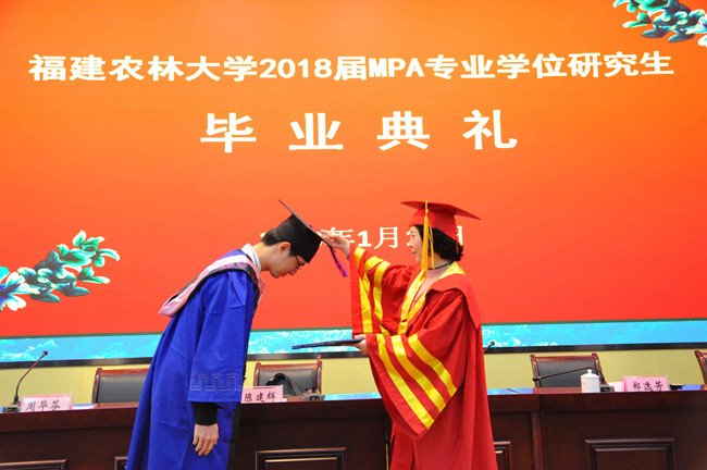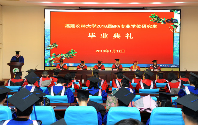 1月12日上午,公共管理学院2018届MPA专业学位研究生毕业典礼在禧强楼学术报告厅举行。学院党政领导、MPA研究生校内外导师、毕业生及其部分家属出席毕业典礼。副院长苏时鹏主持典礼。