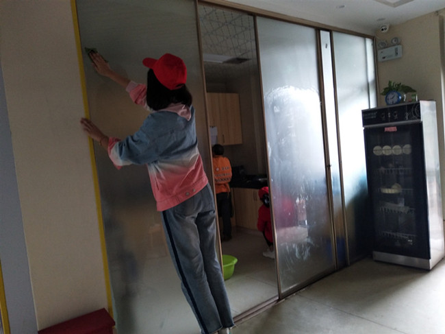志愿者在社区相关负责人介绍完服务中心情况后,热情地投入到志愿服务工作中,利用社区服务中心提供的脸盆、拖把等清洁工具,为社区老人活动室擦门窗、玻璃、拖地板、清理厨房和卫生间等区域卫生;经过几个小时的辛勤劳动,活动室变得明亮、整洁、干净。爷爷奶奶们看到自己的居住环境变了新样,乐得合不拢嘴,连连夸赞青年志愿者们年轻能干,现场氛围温暖融洽。