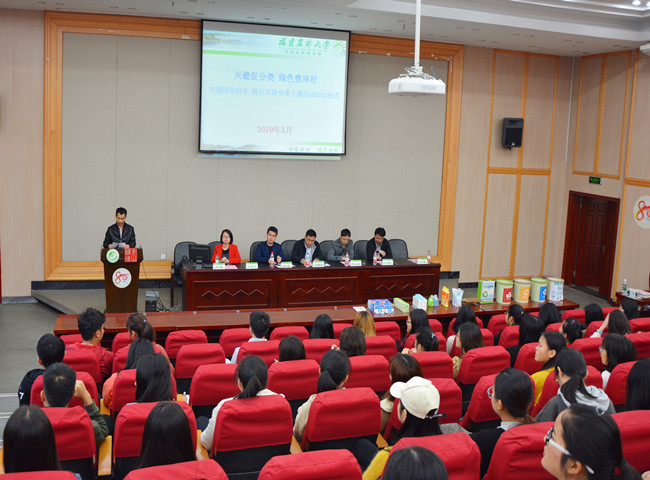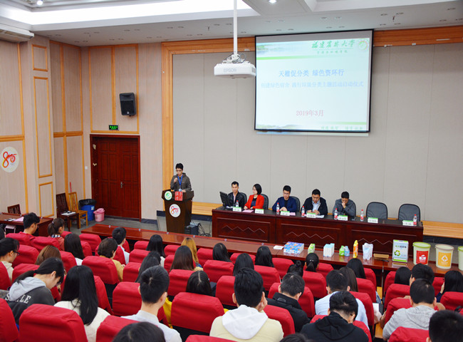 3月30日上午,资源与环境学院在常盛报告厅举行“天楹促分类,绿色资环行——创建绿色宿舍,践行垃圾分类回收主题活动”启动仪式。福州市仓山环境卫生管理处副主任林云伟,中国天楹福建区域总经理戎继伟,福建天楹运营经理张锦胜,福建天楹运营总监龙威应邀出席,学院百余名师生代表参加活动。