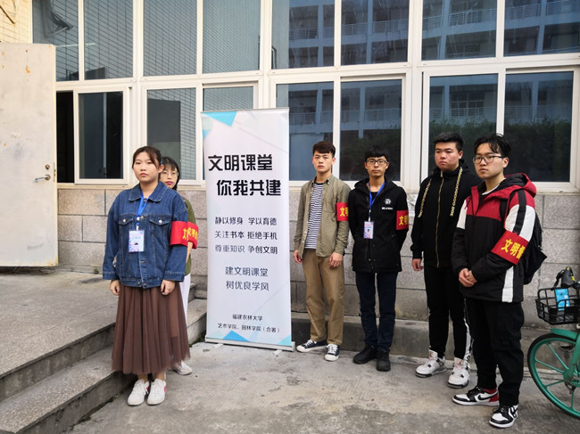为了加强校园文明建设,规范学生日常行为习惯,营造良好的学习氛围,积极响应我校扎实推进学习全国全省教育大会精神的要求,本学期,艺术园林学院自律会在诚智楼A教学楼不定期开展校园文明督导活动。