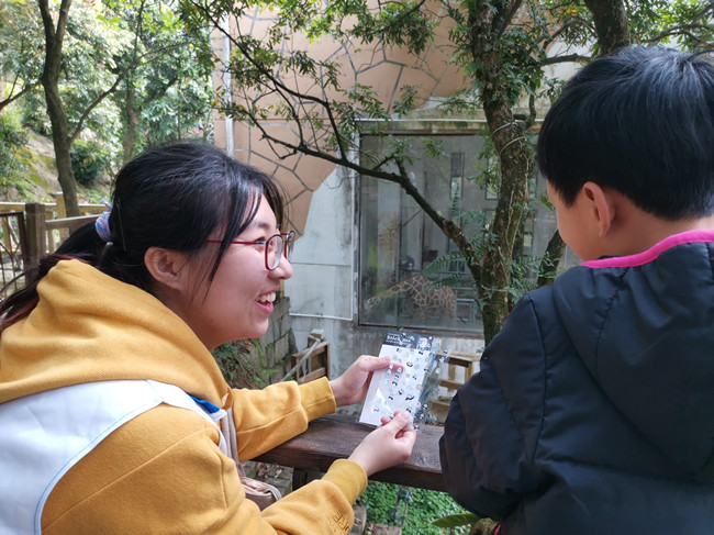 在讲解的同时,负责讲解的成员,还为游客们准备了别出心裁的趣味科普活动。他们先提前整理了有关国家生态文明建设、野生动物保护、动物生活习性等方面的诸多题目,吸引、邀请了小朋友积极参加。对正确回答出问题的小朋友,同学们准备好了精致可爱的小奖品,来鼓励小朋友们进一步了解生态文明建设有关内容,发扬与自然和谐相处的理念。