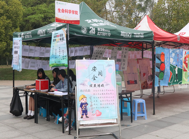 由生命科学学院自律部、宣传部、新媒体部联合承办的生命科学学院安全周系列活动于4月20日在中华园举行。本次活动以艺术展览、团队游戏等多种丰富有趣的方式弘扬优秀传统文化,普及安全常识,提高学生安全意识,引导广大学生树立社会主义校园文明新风尚。