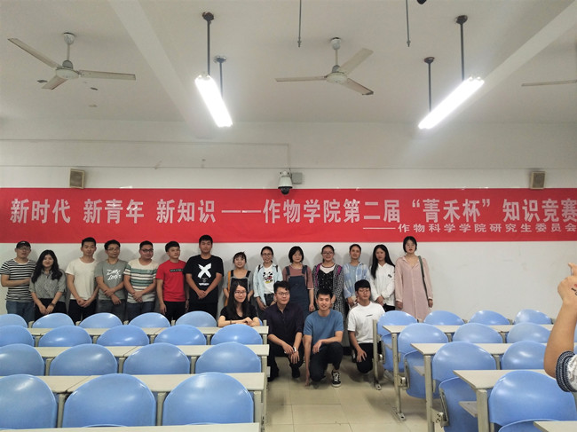 5月12日下午,作物科学学院研究生委员会于在田家炳楼105教室举办了以“新时代 新青年 新知识”为主题的“菁禾杯”知识竞赛。辅导员卢艺彬、校研究生委员会副主席林晨、院研究生委员会主席曾健杰、院团总支书记林静娴和各比赛小组成员等70余人参加了此次活动。