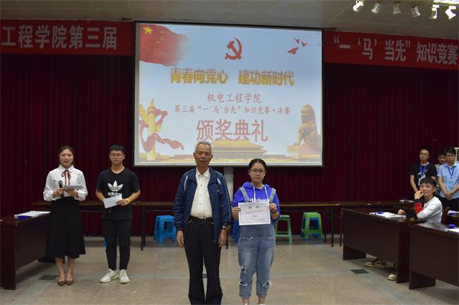 5月10日,机电工程学院第三届大学生学习马克思主义理论“一‘马’当先”知识竞赛决赛在校多功能厅举行。校关工委副主任兼秘书长陈辉钦、校关工委副主任兼院关工委副主任何聪惠、院党委副书记李健英、副院长陈学永以及各年级辅导员和学生代表等近200人观看了比赛。