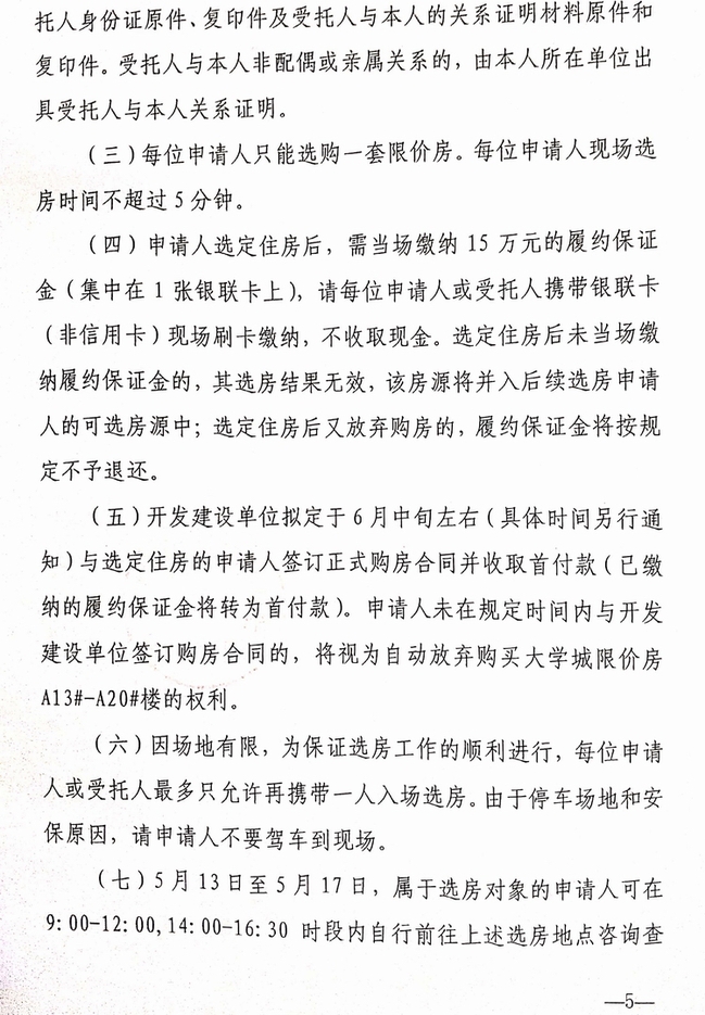 每位申请人只能选购一套限价房,现场选房时间不超过5分钟。