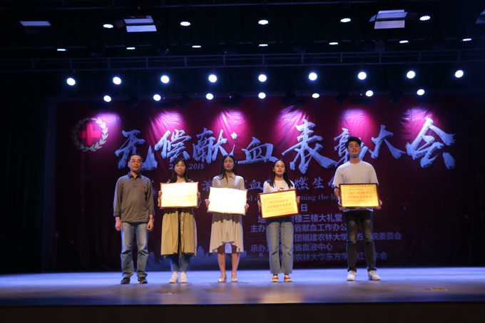 经省血液中心统计,2017-2018年度东方学院师生参与无偿献血总人次达1408人,献血总量达471570毫升,在此过程中涌现出了一批先进集体和个人。本次表彰大会共授予经济系等4个系为先进集体荣誉称号,林铠炜等16名师生为无偿献血先进工作者称号,朱艺婷等61名师生为无偿献血先进个人荣誉称号。