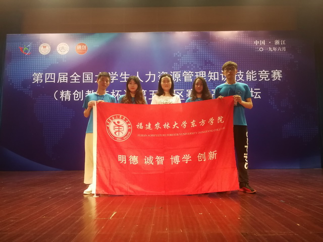 6月1日-2日,第四届全国大学生人力资源管理知识技能竞赛(精创教育杯)第五大区赛在浙江工商大学杭州商学院举行。第五大区赛覆盖地区为上海、江苏、浙江、福建、安徽5个省市,共有51支队伍参赛。东方学院李华栋、翟文刚、张钰、洪妙娟四名同学组成的代表队在学院管理系王烨烨老师、王婧老师的共同指导下,经过激烈的角逐,最终与福州大学、上海财经大学等多所高校同夺大赛二等奖。