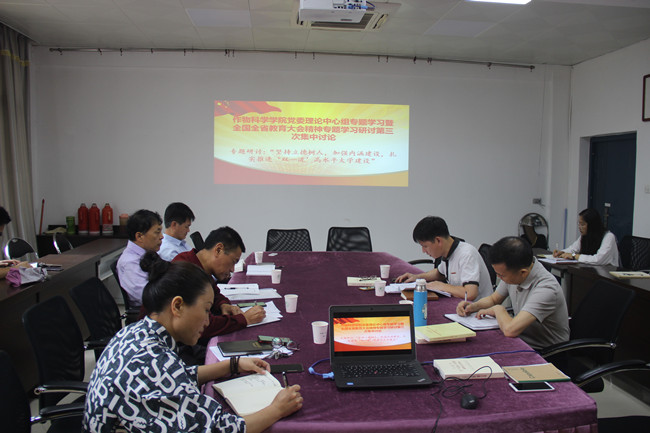 6月13日上午,作物科学学院党委理论中心组开展专题学习暨全国全省教育大会精神专题学习研讨第三次集中讨论,本次讨论会以“坚持立德树人,加强内涵建设,扎实推进‘双一流’高水平大学建设”为主题展开学习讨论,会议由党委书记童庆满主持。