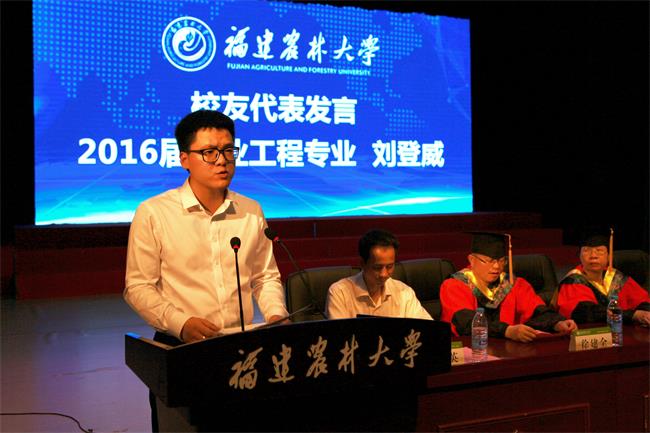 校友代表、福鼎市匠心百年茶业有限公司总经理、我校工业工程专业2016届校友刘登威结合自身经历,谈了做好人生规划、向上向善的体会,希望毕业生们明辨是非,执着进取,攻坚克难,勇于担当,让母校为自己未来的辉煌而骄傲。