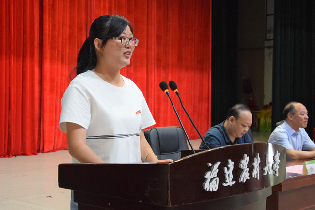 教师代表艾叶上台发言
