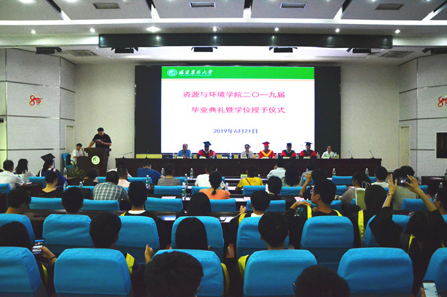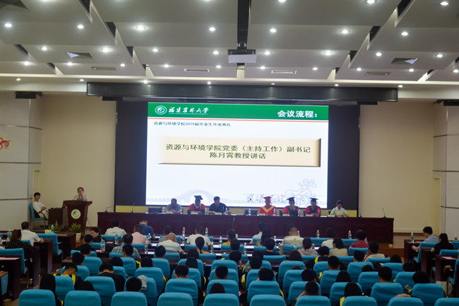 6月21日下午,资源与环境学院2019届毕业生毕业典礼在禧强楼学术报告厅举行。学院党委副书记(主持工作)陈月霄,副院长陈立松、范胜龙,各系教师、辅导员、班主任、毕业生家长代表以及2019届全体毕业生参加毕业典礼。毕业典礼由学院党委副书记刘强主持。