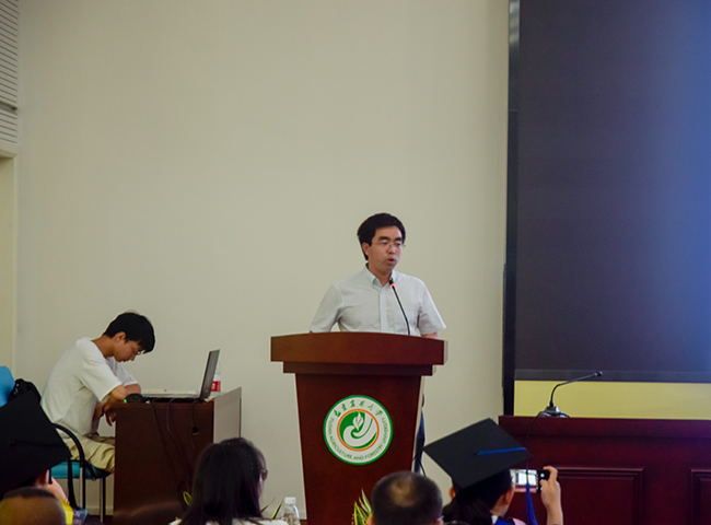 陈立松代表学院向各位毕业生表示热烈的祝贺和美好的祝福,希望毕业生珍惜韶华、奋发有为,勇做走在时代前面的奋进者、开拓者、奉献者,努力使自己成为祖国建设的有用之才、栋梁之材,为实现中国梦奉献智慧和力量。