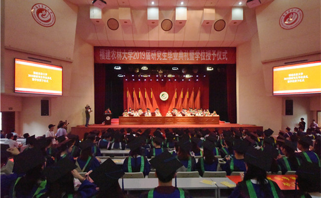 6月25日上午,我校2019届研究生毕业典礼暨学位授予仪式在校礼堂隆重举行。校党委书记严金静,校党委副书记、校长兰思仁,中国科学院院士谢联辉、谢华安,校党委副书记庄祥生、曾华平,校党委常委、纪委书记邱应龙,副校长郑宝东,校党委常委、副校长郑郁善,校学位评定委员会委员,本学年有指导博士毕业生的博士生导师出席毕业典礼。毕业典礼由校党委常委、副校长黄炎和主持。