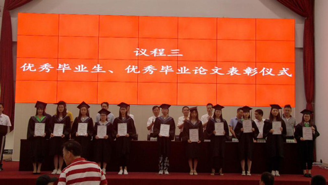 毕业典礼在庄严的国歌声中拉开了序幕。会上举行了本科毕业生学位证书授予仪式,473位毕业生按批次上台领取毕业证书、学位证书。黄成茂宣读了25名荣获优秀毕业生称号的本科毕业生名单,范水生宣读了22名优秀毕业论文获得者,在主席台前排就座的校领导为优秀毕业生及优秀毕业论文获得者颁发证书。