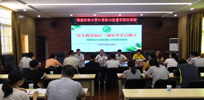 6月28日下午,计算机与信息学院在宝玲楼103室召开“坚守教育初心·做好学生引路人”优秀班主任表彰暨工作经验交流会,院长陈日清、院党委副书记吴鹏程、全体班主任参会。会议由吴鹏程主持。