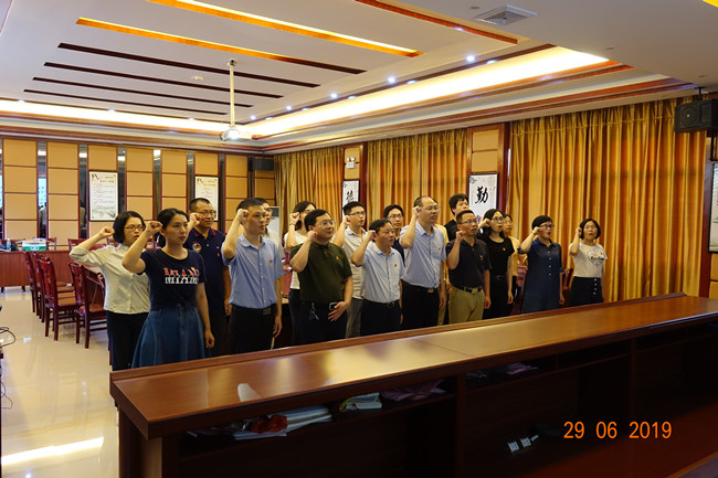 然后,全体支部党员们考察长汀河田水土流失生态建设示范基地。在长汀水土保持试验站会议室,举行结对共建签约仪式、重温入党誓词和上党课。兰思仁和长汀水土保持事业局局长岳辉为全体党员分别上题为“开元kaiyuan(中国)全面助推水土保持工作”和“长汀县水土流失治理与生态建设实践”的党课。