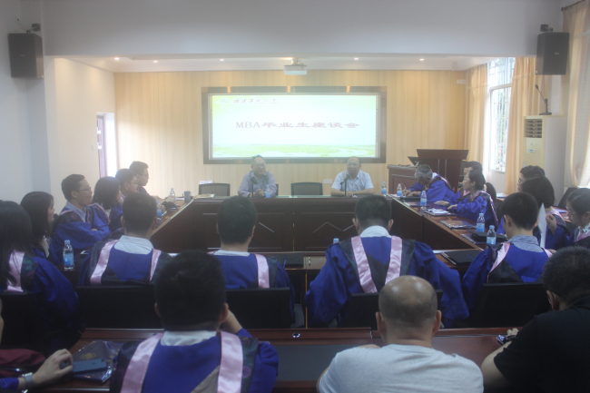 6月25日,2019届MBA毕业生座谈会在管理学院313室举行,管理学院院长陈秋华、校MBA教育中心副主任许安心,以及部分教师代表参加了座谈会,副院长石德金主持会议。