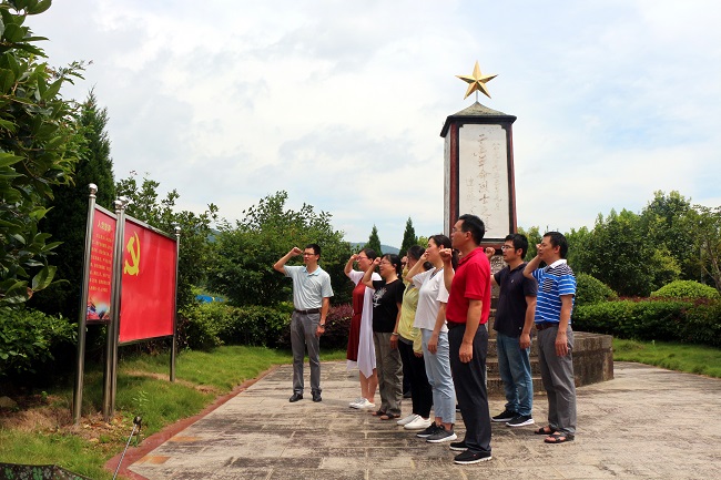 透堡镇是连江红色文化的“摇篮”,是福建省首批五大历史文化名镇之一,这里诞生了连江县第一个党支部,打响了闽东革命第一枪,具有光荣的革命传统。活动中,透堡镇政府工作人员、“红透堡”志愿讲解员陈霞同志为大家介绍了透堡党组织的建立、杨家一门三英烈等感人事迹,支部党员深受感动与教育,大家纷纷表示,美好生活来之不易,我们要发扬先烈们勇于担当,勇于牺牲的精神,不忘初心,牢记使命,发挥党员的先锋模范作用,为了中华民族伟大复兴做出应有的贡献。最后,支部全体党员在“二三”革命烈士纪念碑前进行庄严宣誓,重温了入党誓词。