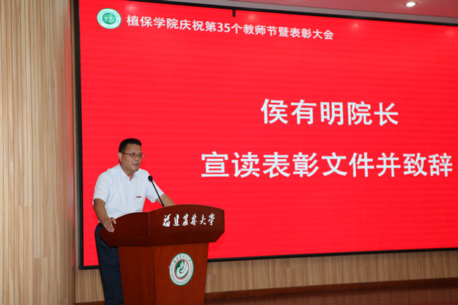 侯有明回顾了近几年学院事业发展的成果。他指出,学院将在人才培养、科学研究、平台建设、队伍建设、社会服务、国际化等方面精准施策,努力为每一位教师成长成才搭建平台,为广大教职工营造优质舒心的工作和生活环境;他要求,广大教师不忘初心,牢记使命,以立德树人为根本任务,以强农兴农为己任,以更加奋发有为的精神状态,更加扎实细致的工作作风,锐意进取,开拓创新,为推动一流植保学科建设和植保事业的发展贡献自己的力量。