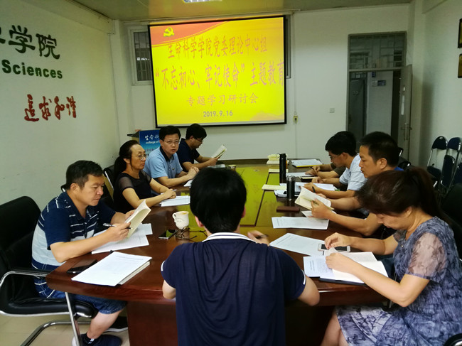 9月16日下午,生命科学学院党委在生科楼404室召开“不忘初心、牢记使命”主题教育动员部署会及学习研讨会,学院班子成员、院党委委员和科级干部参加了会议。学院党委书记林豪森主持会议。