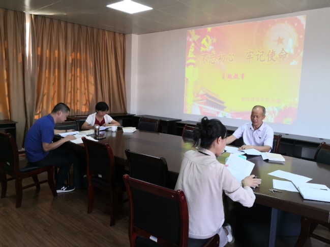 9月18日下午和23日上午,继续教育学院党委在四楼416会议室召开“不忘初心、牢记使命”主题教育第一专题学习研讨,学院党委书记范焕谦主持会议。