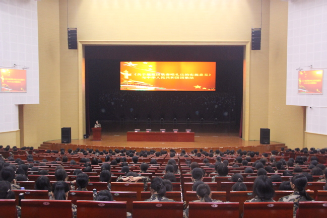 9月19日,安溪校区组织全体2019级新生在礼堂集中学习《关于国歌奏唱礼仪的实施意见》、《中华人民共和国国歌法》等集体唱响国歌。学习现场由吴若兰同学作为代表上台宣读《关于国歌奏唱礼仪的实施意见》与《中华人民共和国国歌法》等,与大家一起集中学习了意见和法规,并唱响国歌。通过学习,同学们进一步认识了尊重国歌、国旗的重要性,增强了同学们爱党爱国、遵纪守法的使命和责任。