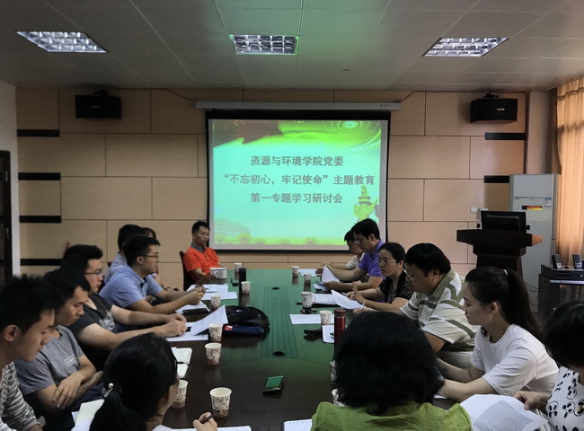 9月24日上午,资源与环境学院党委在博学楼210会议室召开理论学习中心组扩大会议,开展“不忘初心、牢记使命”第一专题集中学习研讨。中心组成员、科级干部、党支部书记参加了研讨会。研讨会由学院党委书记陈月霄主持。