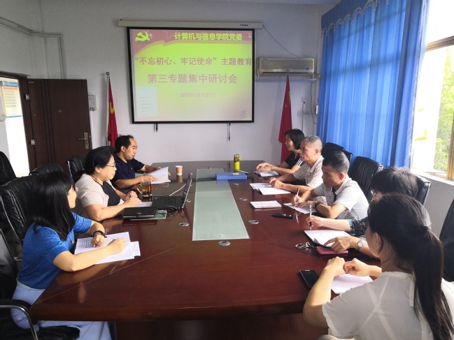 9月27日,计算机与信息学院党委开展“不忘初心、牢记使命”主题教育第三专题集中研讨会。学院党委理论学习中心组成员、领导班子成员和党支部书记参加了研讨会。