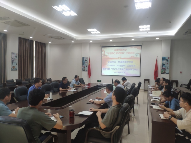 9月29日,安溪校区·安溪茶学院党委召开党委理论中心组扩大会议,开展“不忘初心、牢记使命”主题教育第四专题集中学习研讨,围绕“牢记为民宗旨”这一主题进行学习研讨交流。党委书记雷国铨主持会议,安溪校区管委会副主任、安溪茶学院副院长范水生作重点发言,中心组成员、科级干部、党支部书记参加会议。