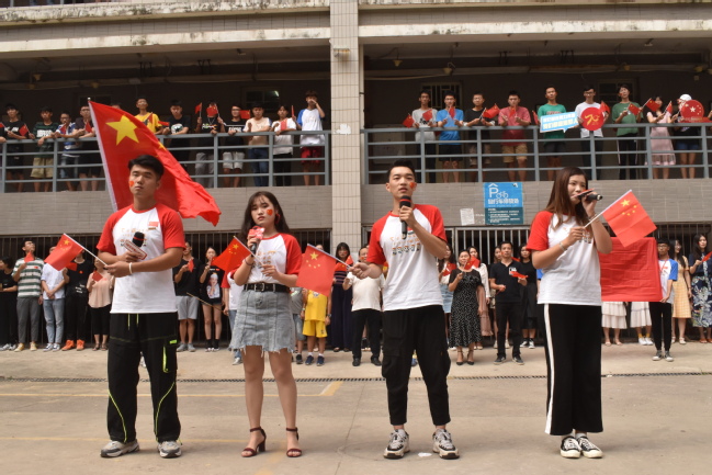 伴随着《歌唱祖国》的音乐声响起,学院师生们挥舞着手中的国旗、高举着“70周年”、“我爱你中国”、“此生无悔入华夏”等牌子,到宿舍楼前驻足观看,共同欣赏小提琴演奏、独唱《歌唱祖国》、合唱《我和我的祖国》等表演,歌声悠扬动听,振奋人心,在场的全体人员情不自禁地跟随着演员们齐声歌唱,大家神采奕奕、激情飞扬,用热情激昂的歌声共同庆祝新中国成立70周年,抒发对党和祖国的热爱,为党和祖国献上最真切的祝福。最后,熟悉的国歌声响起,全场高声合唱《义勇军进行曲》,并齐声喊出“生日快乐”,共同为中华人民共和国成立70周年献上一份最深情的表白。