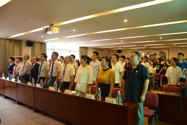 10月1日上午,为庆祝祖国七十华诞,艺术园林学院于明南附307室举行“唱响国歌·献礼新中国成立70周年”主题团日活动。学院党委书记陈为德,院长张飞萍,党委副书记曹伟,副院长黄启堂、陈祖建、陈小英、彭东辉,党委秘书李燕红,院党委委员林皎皎,办公室主任钟玉坤,各年级辅导员及学生代表共200人参加。活动由院团总支书记孙玉婷主持。