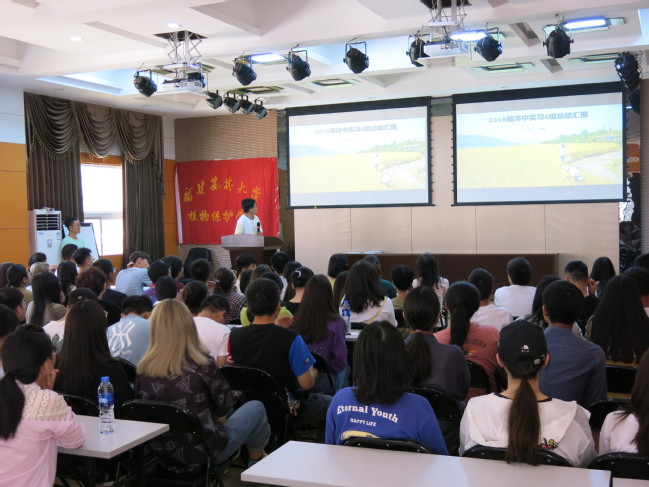 “实践是对理论的巩固与提升。此次实习,颇有收获,不足却也不少。以植为乐,以虫为趣,有苦有乐,值得!”“为了做好一件事努力的快乐永生难忘!”这是植物保护专业2018级学生代表在尤溪洋中科教基地进行为期五天专业课程实习总结汇报时分享的体会和感受。
