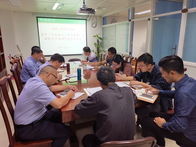 10月21日下午,材料工程学院党委在旗山校区综合楼417会议室召开“不忘初心、牢记使命”主题教育专题调研成果交流会。学院“不忘初心、牢记使命”主题教育领导小组及其办公室全体成员参会。会议由院党委书记陈建辉主持。