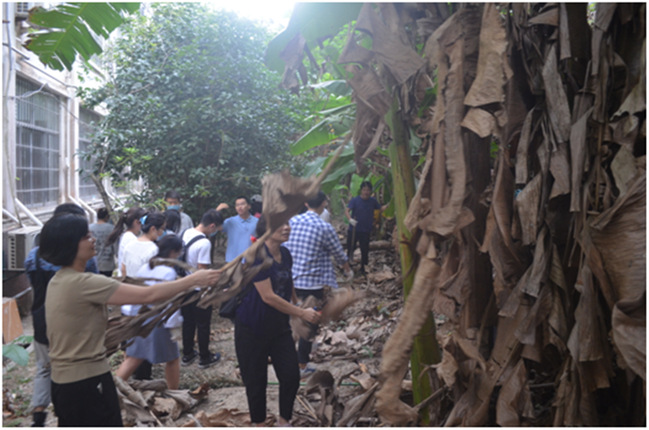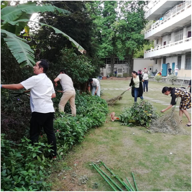 近日,园艺学院党委在校内开展师生党员志愿服务活动,院党委书记张华英、院长陈清西等院领导和全院教工党员、部分研究生党员参加了志愿服务活动。活动现场志愿服务活动以“美化校园环境”为主题,师生党员发扬不怕苦、不怕累的精神,清理了园艺楼周边香蕉树等绿化树木、花卉的枯枝落叶,整治了环境卫生。园艺学院通过开展师生党员志愿服务活动,进一步增强师生党员的责任意识、服务意识和模范意识,激发师生党员以实际行动践行初心和使命;同时,美化校园环境,为师生营造温馨的学习、工作环境。
