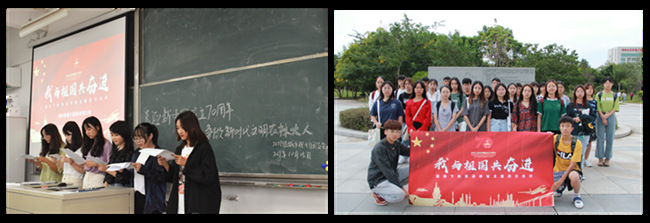 10月16日,2017级视觉传达设计一班团支部于诚智楼A105教室举办“我与祖国共奋进”主题观影活动。大家齐聚一堂,一起观看邱少云、黄继光、狼牙山五壮士等革命先烈的爱国壮举,先烈们崇高的爱国主义、革命英雄主义精神和坚贞不屈的民族气节深深地感染着在场每一个人。2018级风景园林专业一班和二班团支部在创新楼203教室联合开展主题团日活动。团员们齐声高唱《我和我的祖国》,向祖国深情告白,唱出了新时代青年对祖国深沉热烈的爱。2019级园林一班团支部在明南附302教室召开主题团日活动,团员们结合实例,纷纷畅谈青年一代与中国梦的关系,抒发对伟大祖国的热爱,并祝福祖国繁荣昌盛。