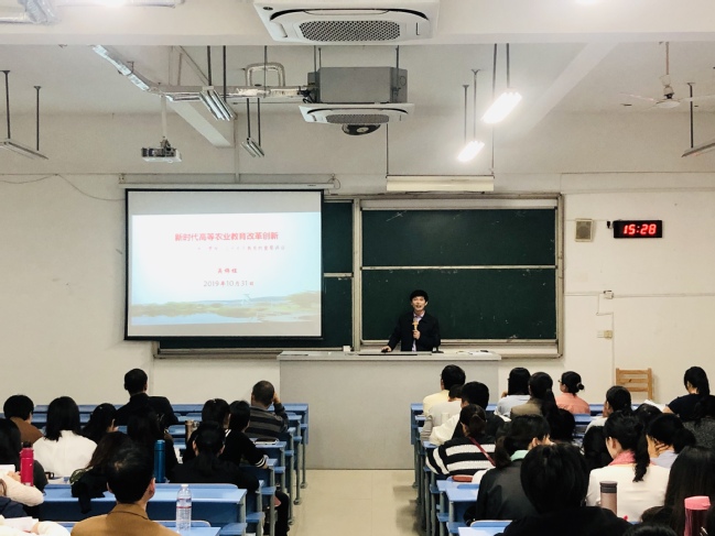吴锦程以“新时代高等农业教育改革创新”为题,结合学校学科优化调整及主题教育开展以来的调研成果,深入阐释了全国教育大会的主要精神。