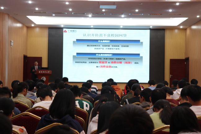 11月9日,资源与环境学院组织开展防范不良校园贷金融知识专题讲座,广发银行股份有限公司福州分行金山支行副行长冯锡钢应邀做讲座,学院党委书记陈月霄、副书记刘强及全体辅导员参加讲座。活动现场现场互动冯锡钢从我国金融机构体系、大学生财务管理的知识以及如何认识和防范不良校园贷三个方面向学院师生深入浅出地解析了金融知识。鲜活的案例,为同学们敲响大学生陷入不良校园网贷和套路贷的警钟,提升了学院学子防范不良校园贷的意识。