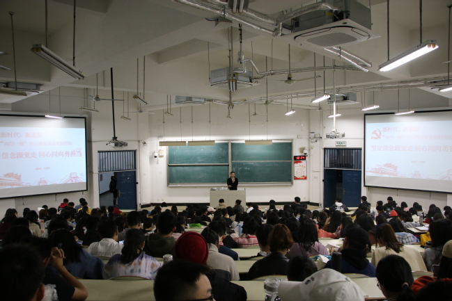近期,经济学院共开展了四场辅导员理论宣讲团新思想宣讲会,校辅导员理论宣讲团成员林锋、林丽、杜泽宇、方云钦分别作了题为《准确理解新时代我国社会的主要矛盾》《以梦为马,不负韶华》《“两学一做”——让2+1大于3》《发挥专业特长,共建美丽中国》的专题报告。经济学院共计1120名本科生、研究生聆听了报告。