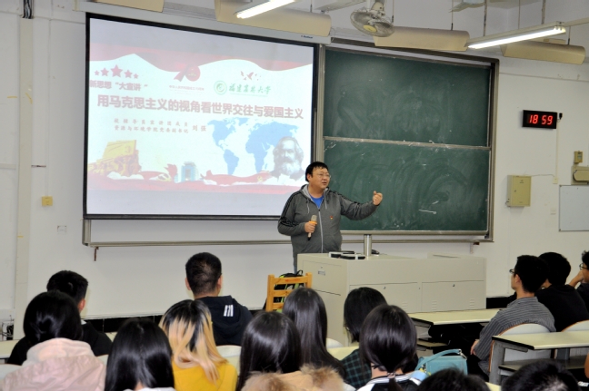 刘强以自己学习领会“习近平总书记在纪念马克思诞辰200周年大会上的重要讲话精神”为切入点,结合真实案例向同学们介绍了如何用马克思主义看世界交往,运用马克思主义原理分析、学习党中央提出的一系列新的重要思想、重要观点、重大断论、重大举措,以及师生普遍关心的热点问题和焦点问题,他强调要在今后的学习和工作中学以致用,不断提升对马克思主义的认识,运用马克思主义原理指导实践,将实践和原理相结合,不断推进马克思主义中国化,更好地指导学习和工作。
