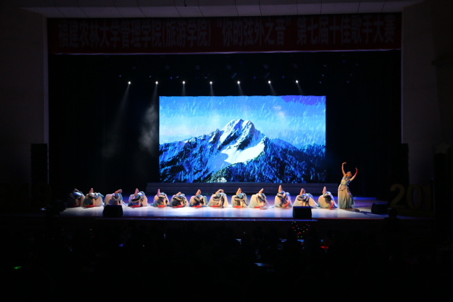 经初赛和复赛的层层选拔,十二名选手站在了决赛现场。比赛共设置“谁与争锋”、“我要和你一起唱”、“巅峰对决”三个环节。学院舞蹈队用藏族舞《天浴》把观众带入美轮美奂的艺术世界,随后歌手大赛正式开始。第一轮比赛中,选手们的演唱风格或温润如玉,或激情四射,让观众享受了一场视听盛宴。在激烈的“谁与争锋”后,八名选手成功晋级第二轮帮帮唱环节,选手们与帮唱嘉宾深情对唱,惊艳全场,经过激烈的比拼,四名选手进入冠亚季军的角逐。最终, 2017级文化产业管理的林贝谛摘得桂冠,2017级工商管理的郑燊和2017级会计的巫昕璇分别斩获亚军和季军。最后,学院合唱团带来合唱曲目《夜空中最亮的星》,展现了新时代大学生有理想敢于追梦的信心。