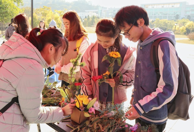 为庆祝祖国七十华诞,大力弘扬以爱国主义为核心的民族精神,12月8日上午,艺术园林学院花艺协会于中华园举办“花开盛世 雅韵中华”第十一届插花大赛。
