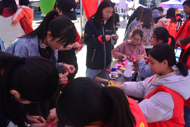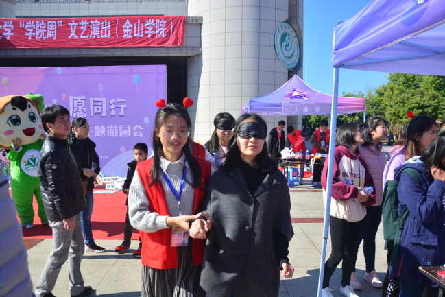 现场游园活动分为3个区,志愿服务风采展区、志愿服务体验游戏区和青春集市。志愿服务风采展区整理了全校各学院青年志愿者协会的品牌活动以及校青协的各项志愿服务工作,让观看的同学们能够饱览志愿服务风采。在志愿服务体验游戏区,来自13个学院青年志愿者协会结合日常开展的志愿服务活动,开展相关的体验游戏,如“你是我的眼”“无声天使”等。青春集市则是由大学生素食文化协会等七个学生社团,现场进行手工制作体验和社团特色小物义卖和旧衣物回收,募捐的资金、物品将通过三农爱心社下乡支教捐助给当地乡村留守儿童,为他们送去一份温暖。活动中,志愿者们向同学们介绍了志愿服务理念和开展的志愿活动,同学们收获匪浅。