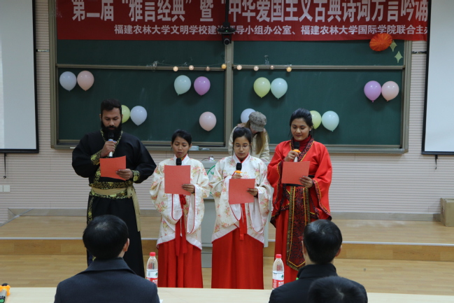 据悉,“雅言经典”系列活动已举办两届,活动旨在贯彻落实立德树人的根本任务,丰富大学校园文化建设,活动受到校内学子的热情响应,已经成为校文明办与国际学院共同建设、着力打造的校园文化品牌。