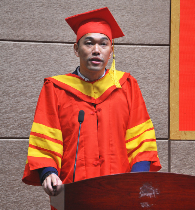毕业典礼在庄严的国歌声中拉开序幕。廖飞宇为2019届研究生毕业生致辞,在祝贺同学们顺利完成学业的同时,深情叮嘱毕业生们要不畏困难,化挫折为动力,保持乐观的心态,积极行动,要锻炼提高执行力和解决问题的能力,“莫等闲”,奋发前行,踏实勤勉,本分做人。