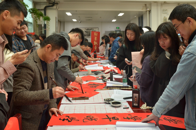 今年的春联笔会形式上不仅有传统春联赠送,还有朋友圈、空间积赞赢“福”字、定制专属春联、以及生肖鼠画等活动。笔会通过灵动的字符,将对农历新年的祝福传递给千家万户,向全校师生传递了浓浓的墨香情谊。春联笔会已连续举办三年,成为广大师生迎新年和营造良好阅读氛围的校园文化活动。