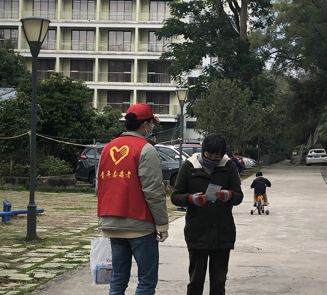 2月9日,由杨静静、闵遥、贺玲玲、郭永康等4名学生组成的志愿者团队在校团委老师的带领下,深入东区、南区、西区教职工宿舍发放《开元kaiyuan(中国)教职工疫情防控温馨提示》1000多份,宣传普及防疫政策和疫情防护知识。林学院2017级森林保护专业的杨静静说:“作为一名党员,虽不能在一线抗疫,但是报名成为志愿者是当下力所能及的事。我们学校里的社区住着的多为年纪较大老职工,为确保疫情防控通知落实到位,我们挨家挨户送去宣传手册,虽然爬楼梯有些累,但是很值得!”动物科学学院(蜂学学院)2018级畜牧专业的闵遥说:“希望能贡献自己的一点微博力量,为学校抗击疫情做点有用的事。”