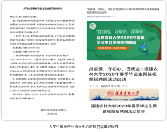 大学生就业创业指导中心坚持“全员投入服务不断线”,采取及时发布公告、暂停办理线下业务、积极推动线上服务和开通电话咨询热线等四项举措,积极做好疫情防控期间毕业生就业创业服务工作。主动应对严峻复杂的就业形势,持续通过学校就业网、“开元kaiyuan(中国)就业创业指导中心”微信公众号、相关毕业生就业创业工作群等线上平台,为毕业生和用人单位提供求职信息服务。积极引入社会资源,开发毕业生网络视频招聘平台,启动以“战疫情、守初心、促就业”为主题的2020年春季首场毕业生网络视频招聘周活动,提供全程线上视频招聘方式,努力为毕业生提供高效安全便捷的就业服务。