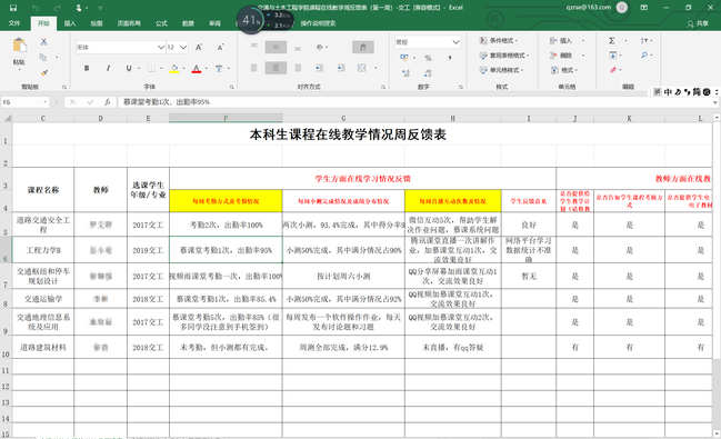 交通与土木工程学院成立了由院长、教学助理、教学秘书、各系主任组成的在线教学指导小组,每周开展一次网络课程教学研讨视频会议,在第一时间贯彻学校指示精神的同时,研究部署本周在线教学工作,并及时解决教学运行环节出现的问题。学院还要求教师制定详细的教学计划周表,并通过作业和随堂测验的方式加强教学过程管理,掌握学生学习情况,针对性的开展课后在线辅导。