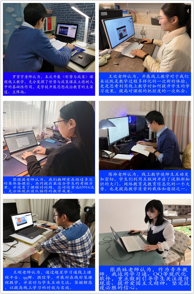 老师们纷纷表示,在线教学是一次严峻的教学考验,在学校与学院的精心组织下,通过团队合作,积极迎接挑战,克服各种困难,保证了本课程的顺利实施,并得到了学生的高度认可。