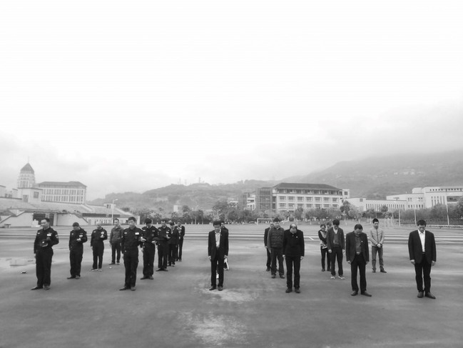 按照国务院决定,2020年4月4日举行全国性哀悼活动。4日上午10时,安溪校区积极响应国务院号召,在校区体育场,举行向牺牲烈士和逝世同胞下半旗致哀活动,校区在班在岗的领导班子成员雷国铨、林金科、黄成茂、陈勇及值班值守的教职员工、在岗的物业安保人员等参加活动。